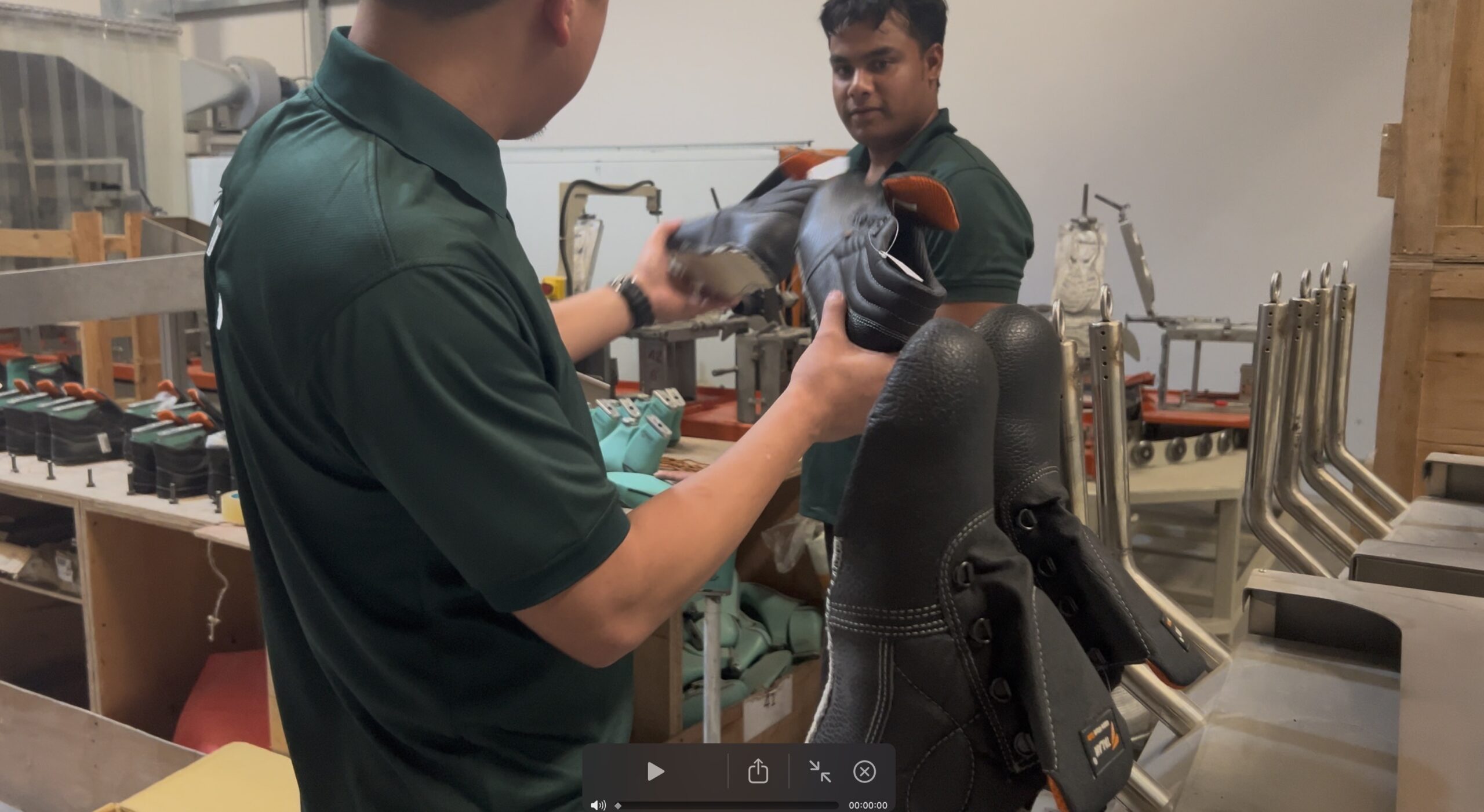 Our company have purchased new equipment, more than $4,7 million invested in acquiring equipment from leading companies of Italy, Germany. In 2002, a serial production of the directly moulded method was started, which gave a unique possibility for local enterprises to use modern, comfortable and safe footwear with PU-PU and PU-TPU sole for secure of their workers.